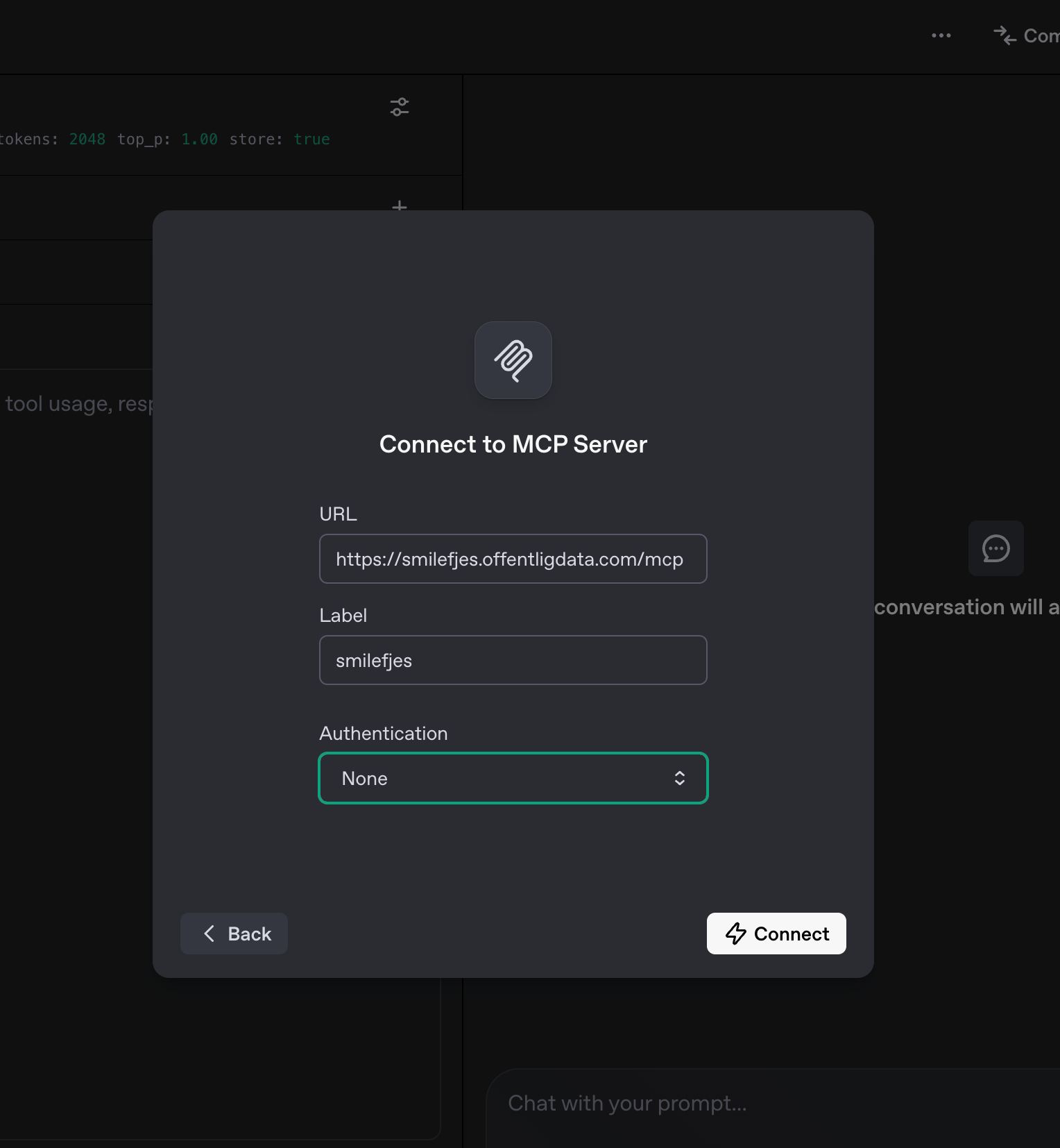 Eksempel av konfig i OpenAI playground.