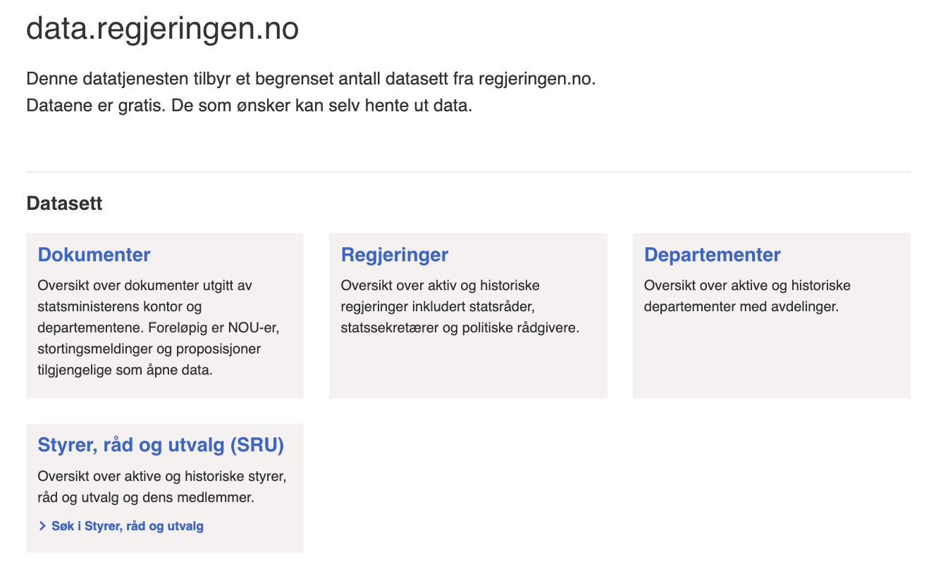 Du har kanskje funnet denne lenken via data.norge.no om data.regjeringen.no her :